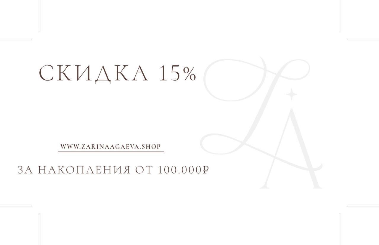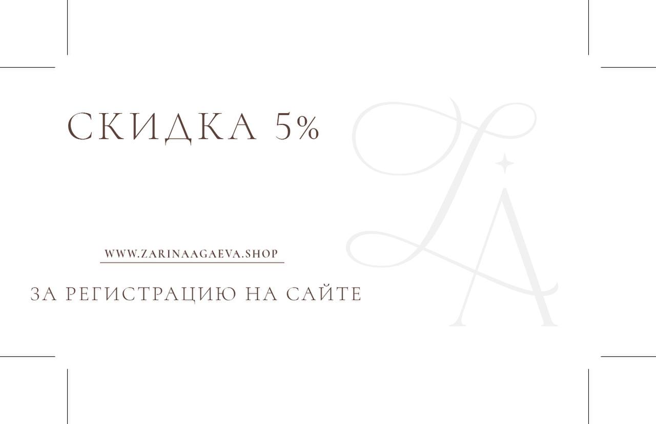 Дополнительная скидка +5% к карте лояльности действует в офлайн- и онлайн-магазине Zarina Agaeva Shop в течение 3х дней. Скидка в офлайн-магазинах предоставляется только при личном присутствии именинника и наличии документа, удостоверяющего личность.